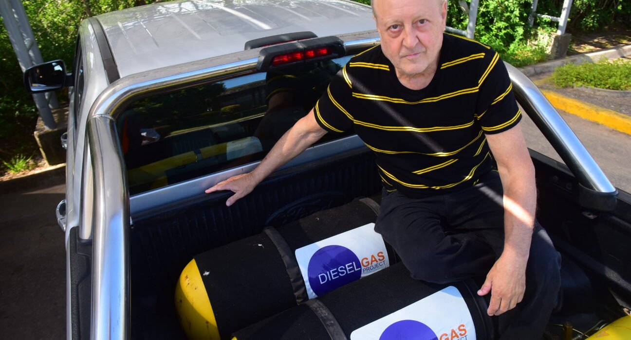 «En un momento, pensé que la única solución era reemplazar el diesel completamente,» cuenta Adolfo. «Pero estaba claro que eso presentaba muchos problemas. Entonces, se me ocurrió que podríamos usar una pequeña cantidad de diesel simplemente para iniciar la combustión y luego dejar que el GNC hiciera el resto del trabajo.» Esta revelación fue clave en el desarrollo del sistema que hoy lo lleva a demostrar su funcionamiento en Brasil.